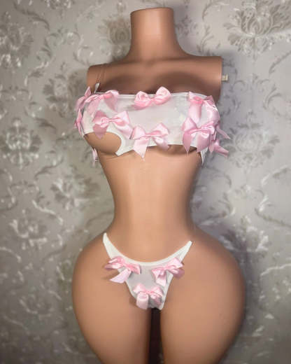 Add a touch of dimensional elegance to your intimate wardrobe with this stunning strapless set. The bra features eye-catching 3D bow detailing that creates a playful yet sophisticated focal point, while the matching thong completes the ensemble with seamless comfort. Designed for both confidence and allure, this set is perfect for special occasions or elevating your everyday style.