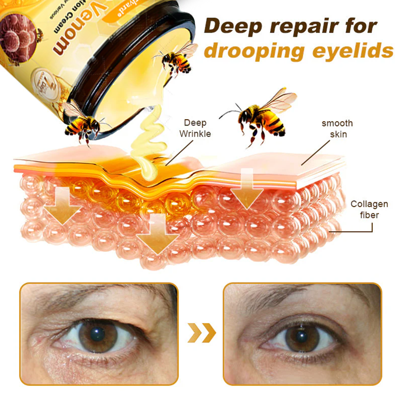 Zentra Bee Venom Skin Restoration Cream combines cutting-edge technology with unique ingredients to specifically target and deeply repair drooping eyelids. Unlike typical products on the market, Zentra not only stimulates collagen production to enhance the elasticity of the delicate skin around the eyes but also utilizes bee venom peptides to accurately mimic the effects of Botox. This relaxes the muscles around the eyes and lifts sagging eyelids. The unique formula penetrates deep into the skin, promotes blood circulation, and, together with hyaluronic acid's deep moisturizing effects, makes the skin around your eyes plump and full. This effectively reduces drooping eyelids, giving your eyes a youthful, firm appearance. Choose Zentra to experience true skincare innovation and completely say goodbye to drooping eyelids.