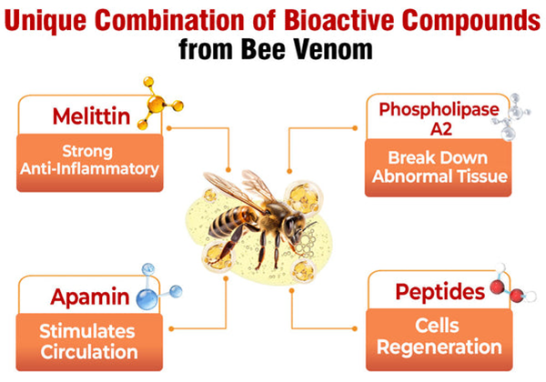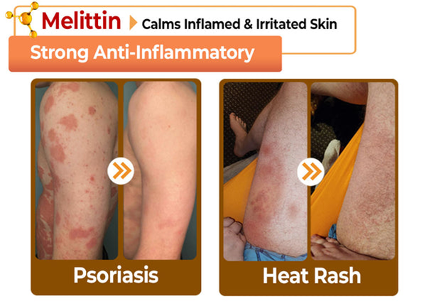 Melittin can reduce the swelling, redness, and pain associated with the inflamed skin or lumps.