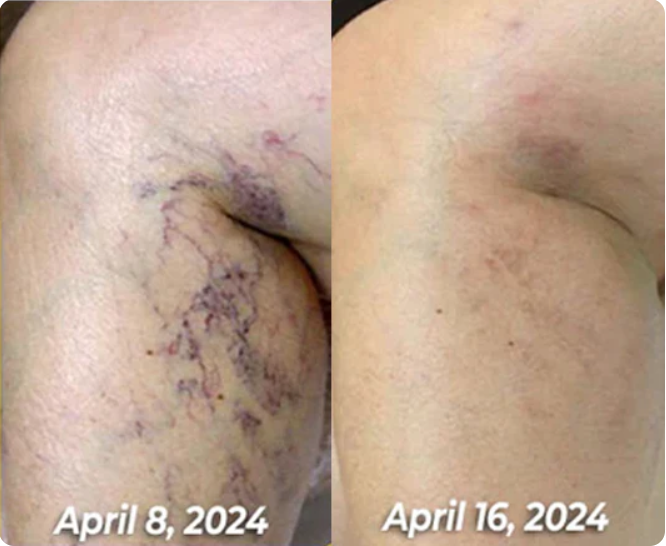 "I'm on my feet all day for work, and it's caused me to develop spider veins. I hated how they looked and felt like I had no choice but to cover them up with long pants. I decided to try this cream after hearing about the benefits of bee venom for skin issues. It actually worked! My legs felt more relaxed on the first day, and by day six, the veins started to fade. After about a week more, they were totally gone! My legs are smooth again, and even with long hours of standing, there's no more swelling or discomfort!"