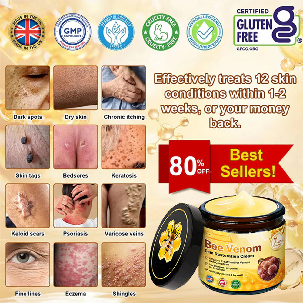 The Bee Venom Skin Antibacterial Cream is a potent remedy for addressing various skin issues, owing to its unique blend of bioactive compounds from bee venom. With proven anti-inflammatory, antibacterial properties, and powerful enzymes, it effectively tackles different skin problems.