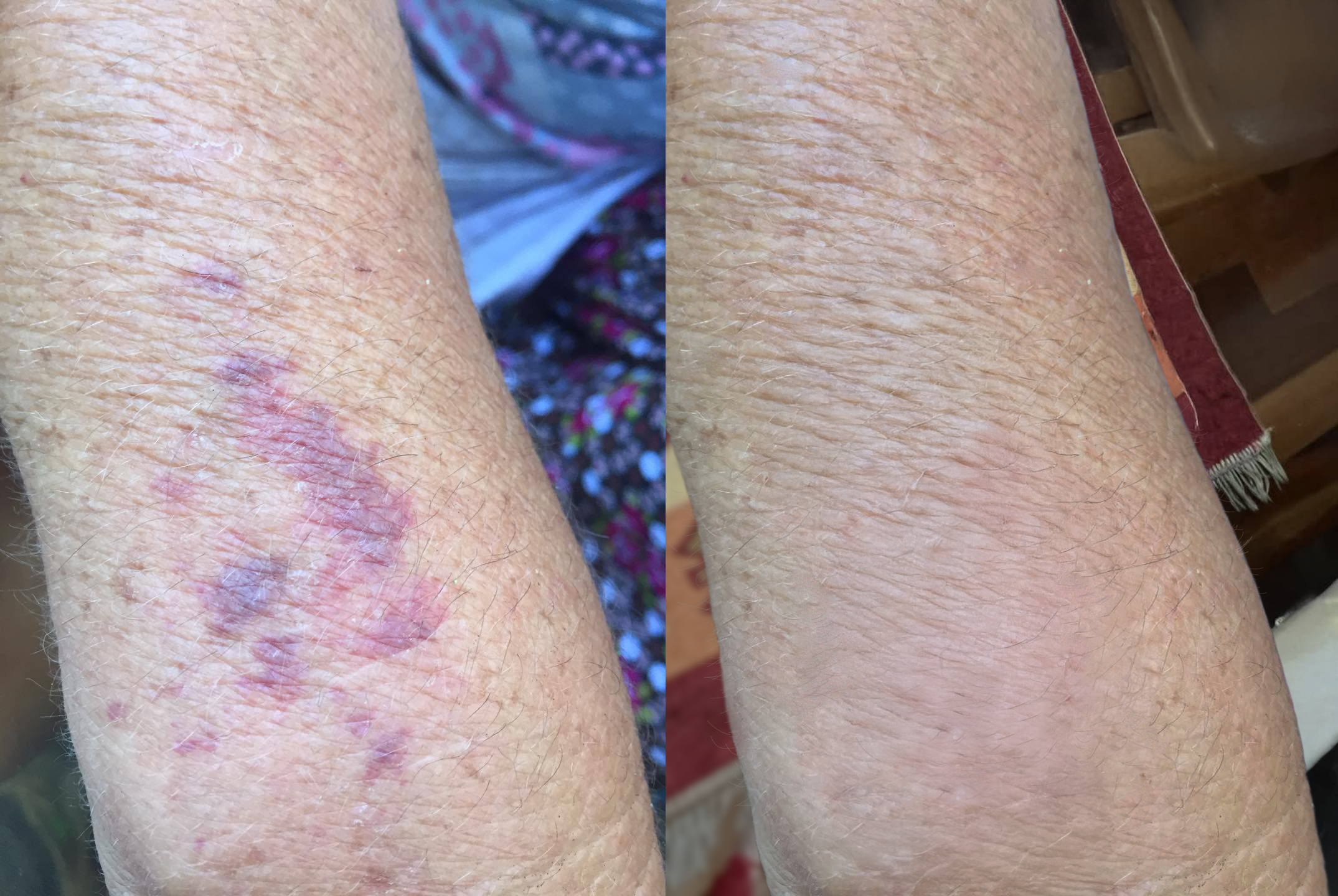 I’m 74 years old, and I often get big purple spots on my thighs, even without bumping into anything. Just a slight touch can cause bleeding. My doctor said it’s senile purpura from aging skin and weak blood vessels. I had tried so many creams before, but nothing really helped—so I didn’t expect much.