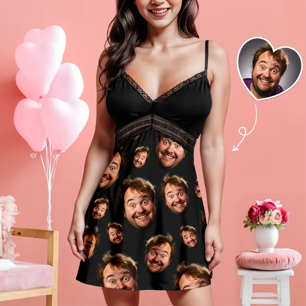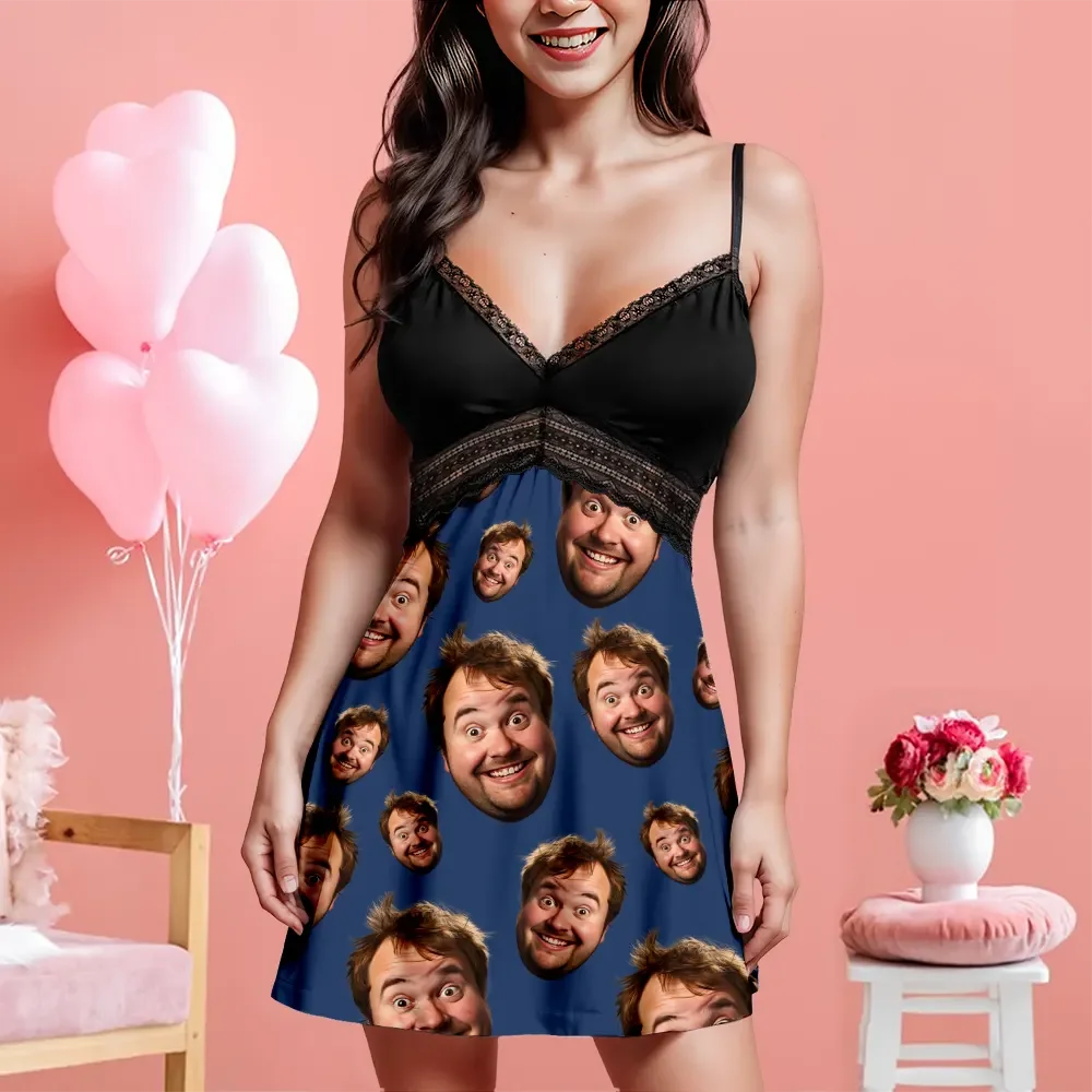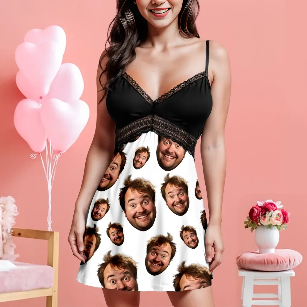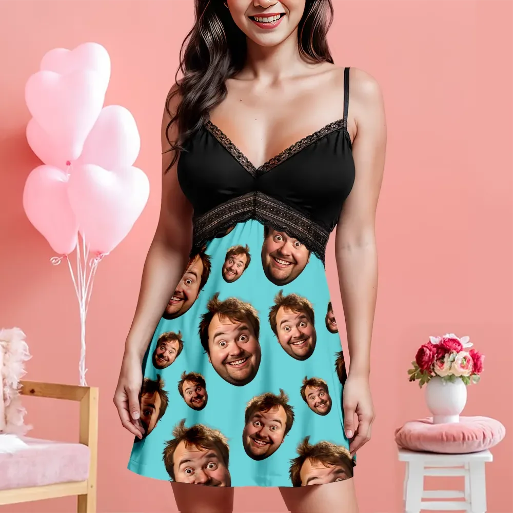 Custom Face Women Lace Suspender Sleepwear Personalized V-neck Multi-Color Nightwear