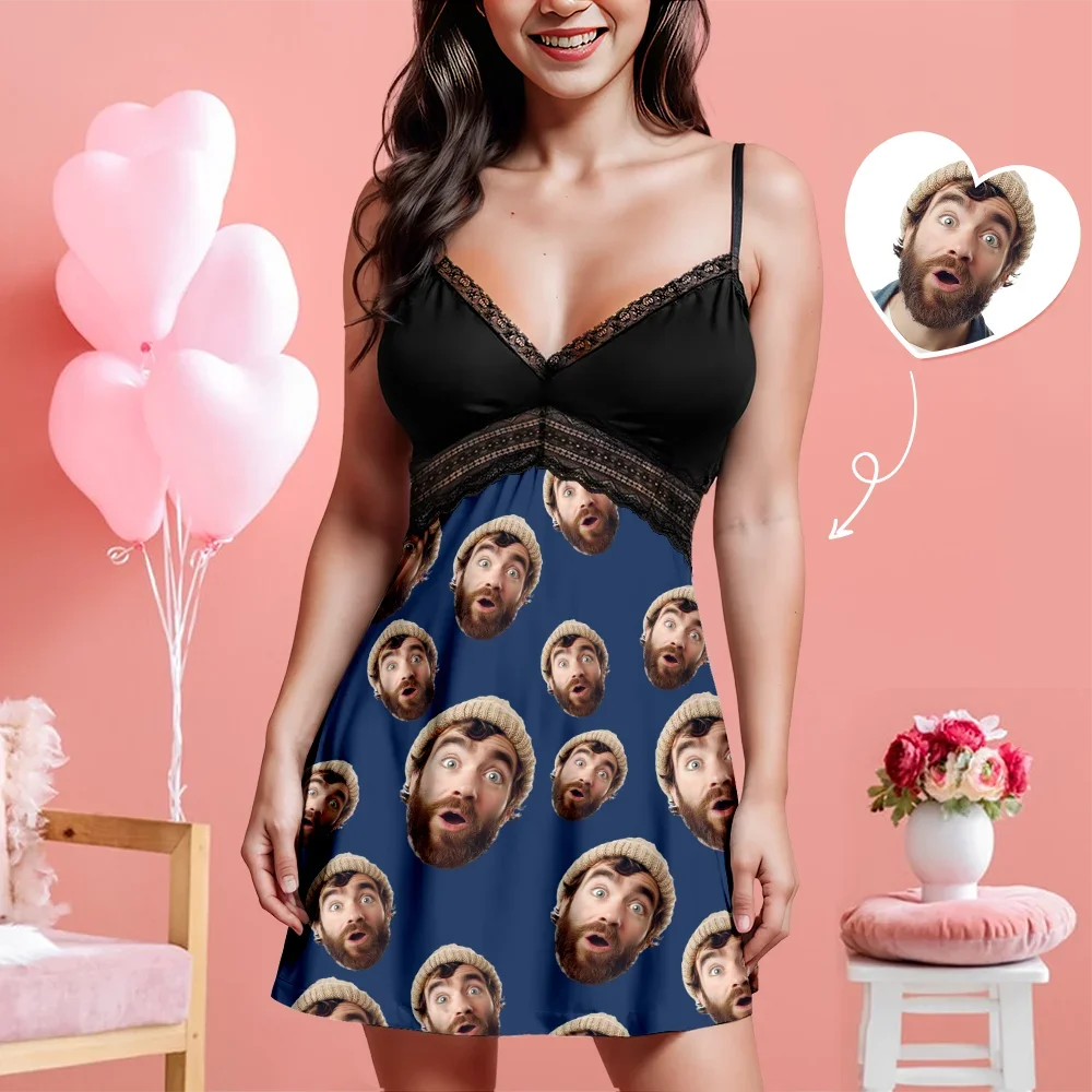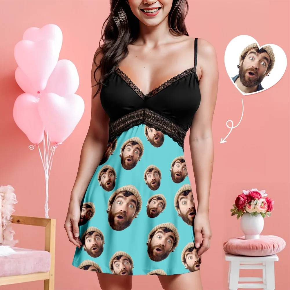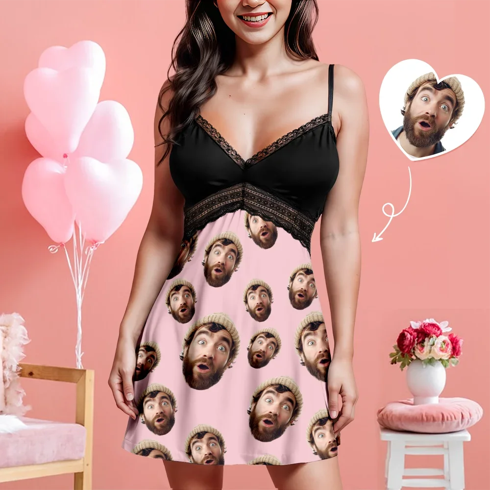 Custom Face Women Lace Suspender Sleepwear Personalized V-neck Multi-Color Nightwear