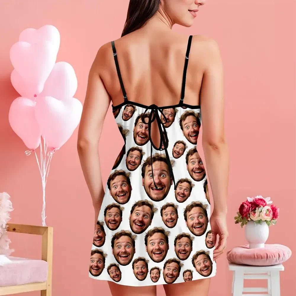 Custom Face Women Lace Suspender Sleepwear Personalized V-neck Multi-Color Nightwear