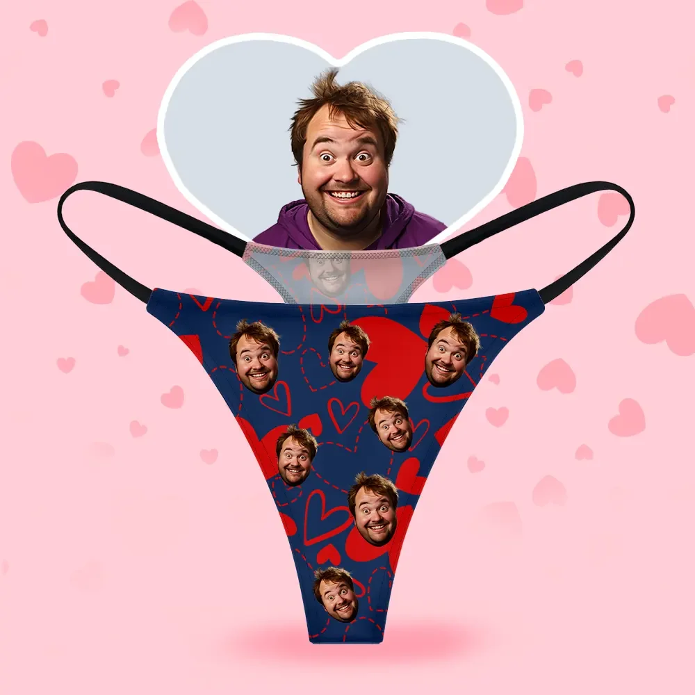 Custom Face Women's Thongs Heart Style Underwear, Birthday Gifts for Wife and Girlfriend
