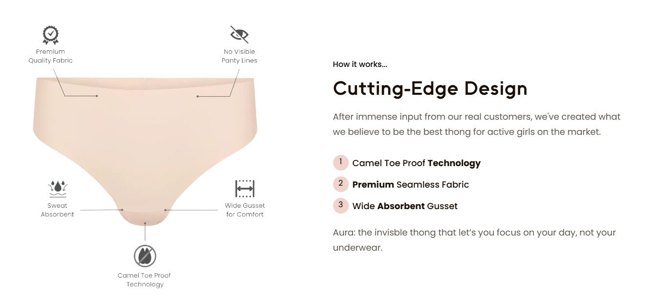 Our signature thong is putting a stop to embarrassing camel toes, sweat patches and panty lines around the world!