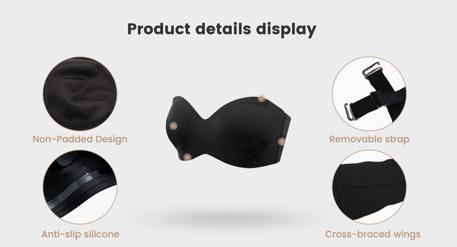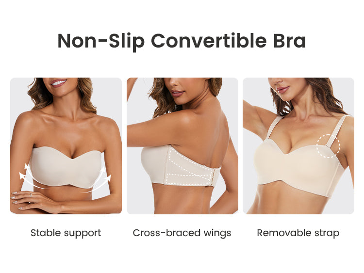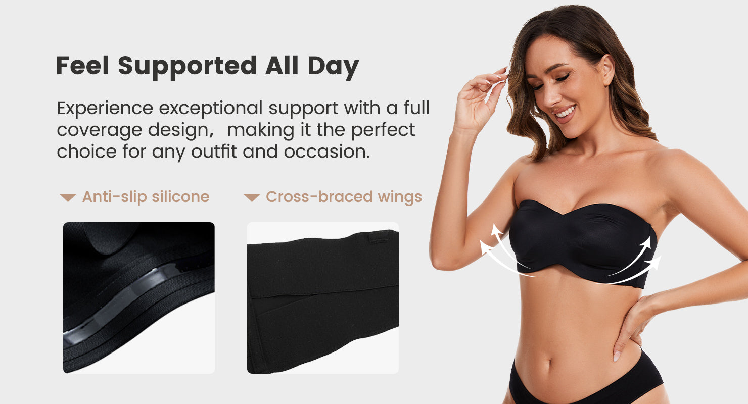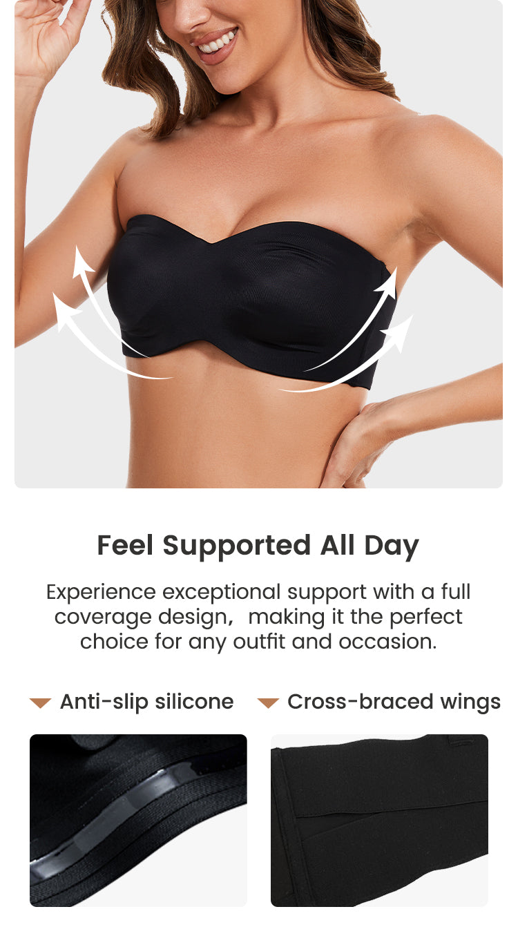 Full Support Non-Slip Convertible Bandeau Bra - Black