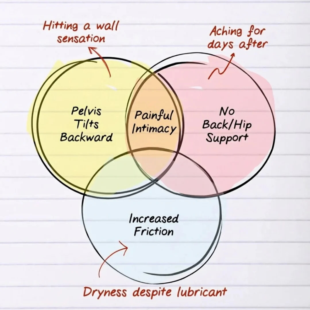 The Problem: Years of chronic pain, arthritis, or just aging bodies mean that flat-on-your-back intimacy puts unbearable strain on your lower back and hips.