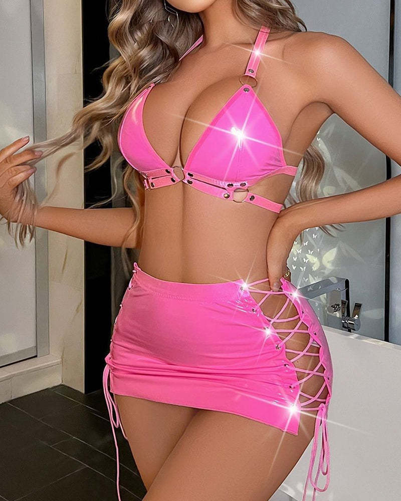 PU Patent Leather Bunny Girl Role-playing Sexy Glossy Set