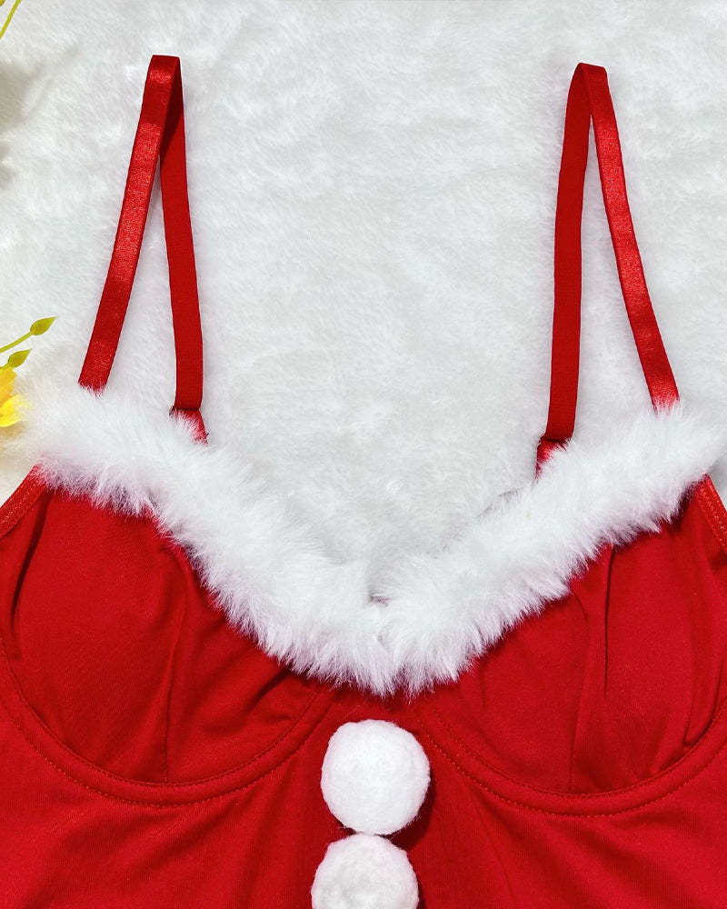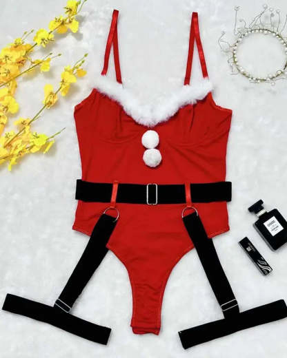 Embrace festive glamour in this alluring velvet Christmas lingerie set. Featuring a soft velvet fabric with a faux fur V-neckline and an adjustable garter belt, this Santa-inspired design combines holiday charm with sensual elegance. Perfect for gifting or celebrating special moments, it’s designed to make you feel confident and festive.