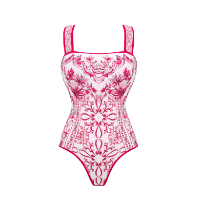 Sling Lily and Majolica Series Pattern Print One Piece Swimsuit and Skirt or Pants